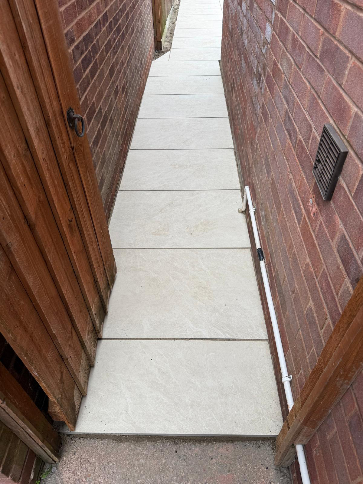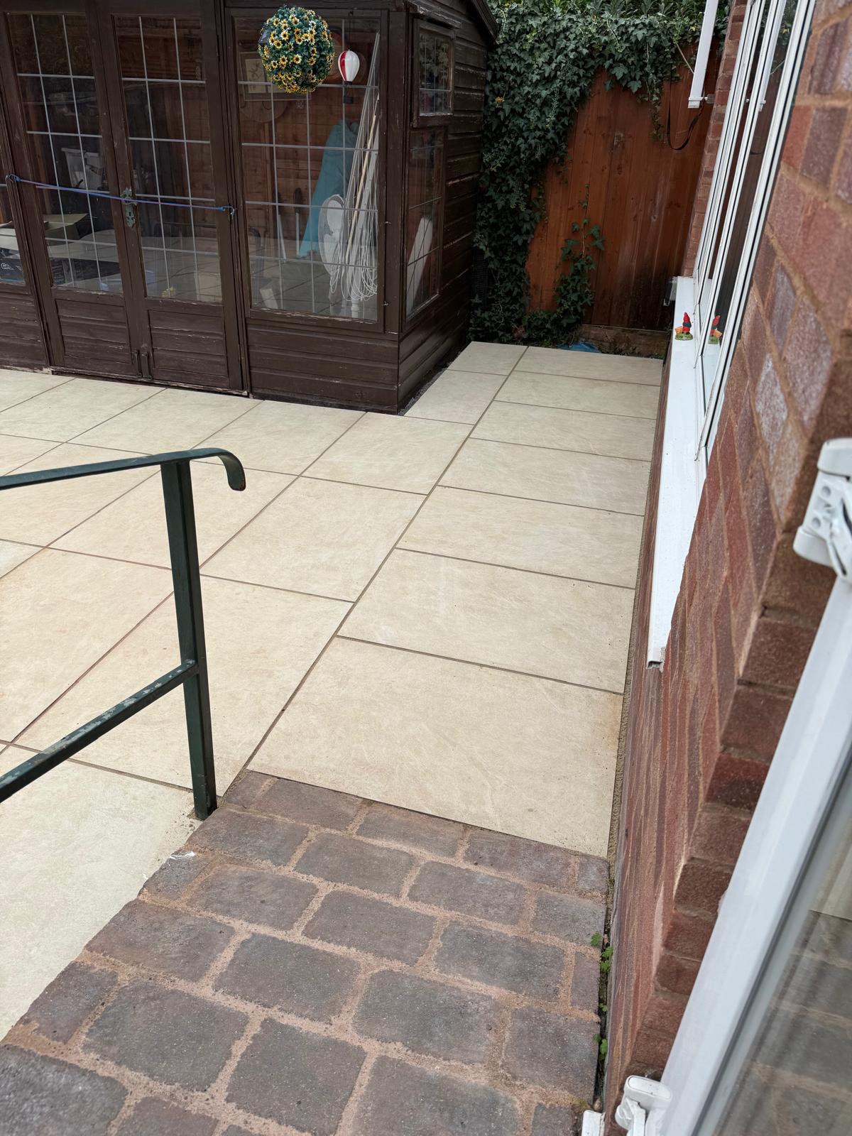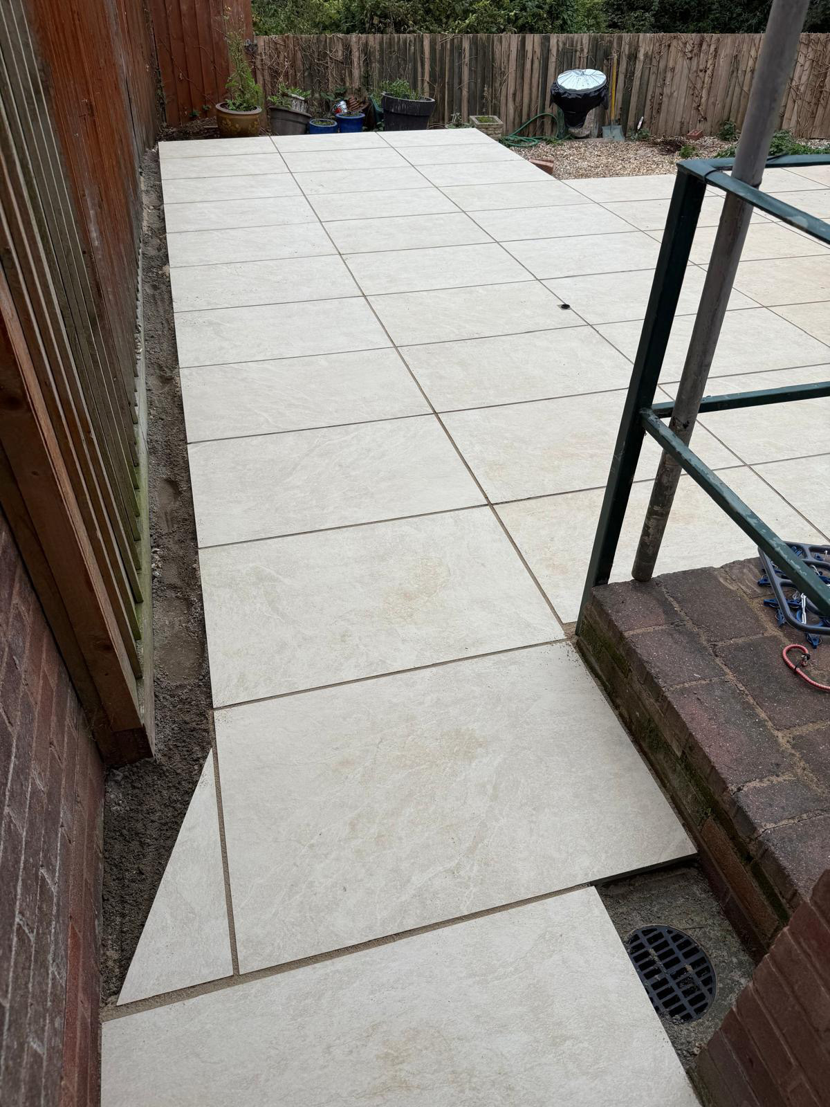 Back garden overlay, all new slabs, ramp for wheelchair, Exmouth Projects Tiverton Bradninch Exeter Would you like your garden transformed? Call 07745 792637