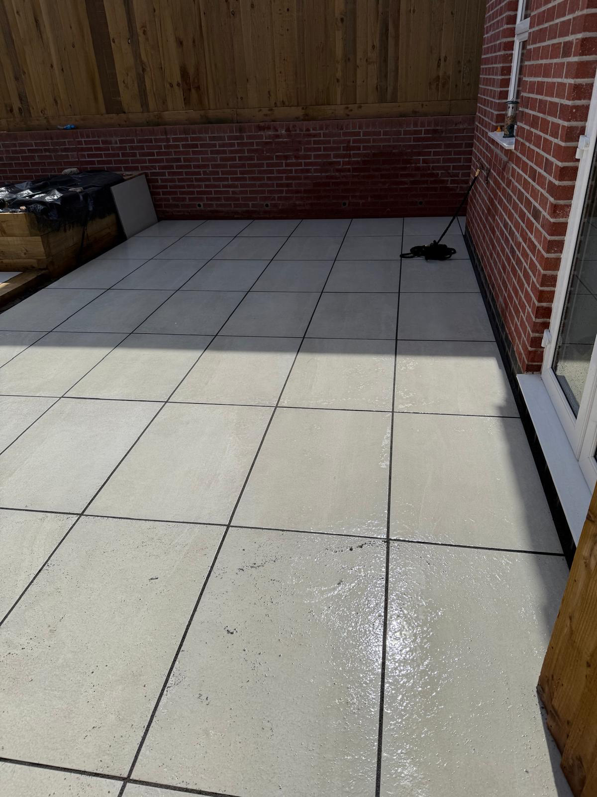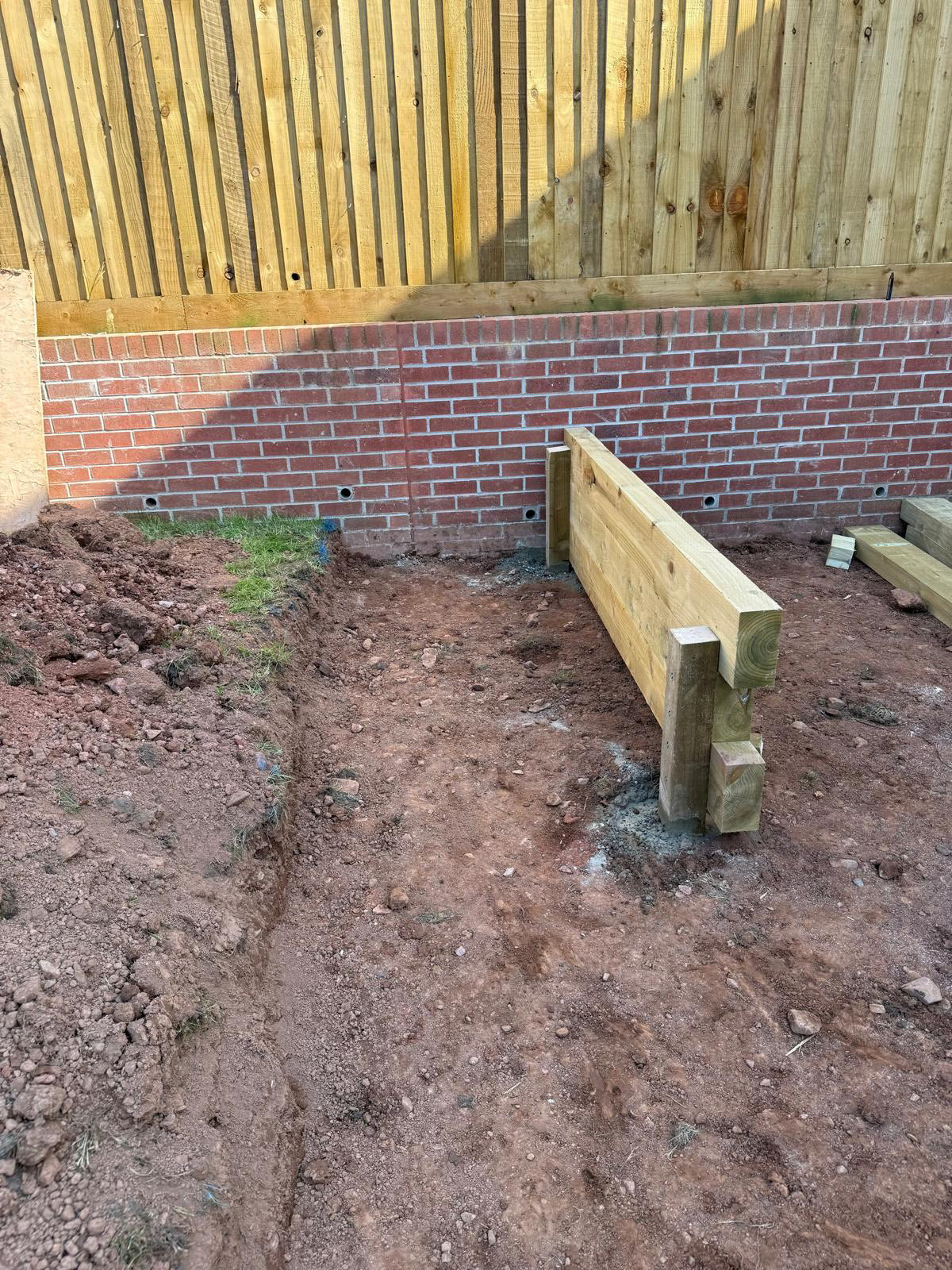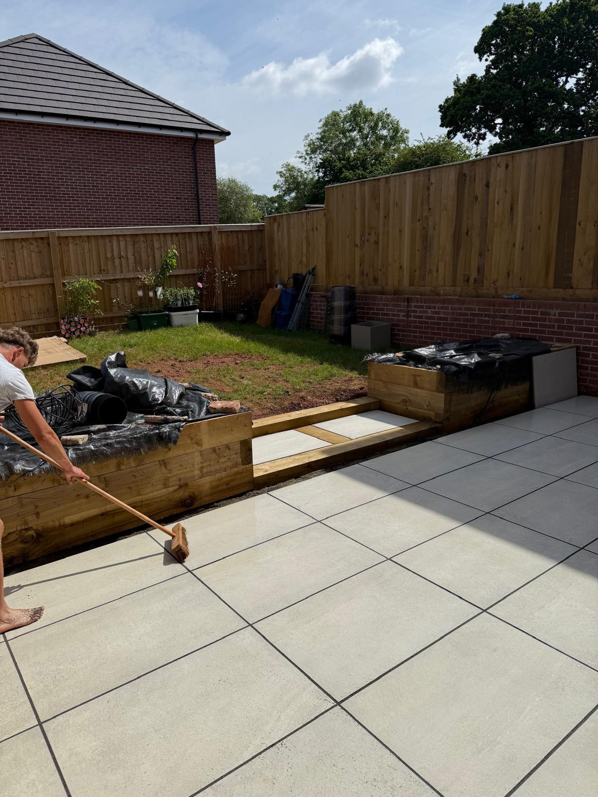 Garden Redesign, Tiverton. New slabs and sleepers steps with planters put in. Projects Bradninch Exmouth Exeter To discuss your garden redesign… Call 07745 792637